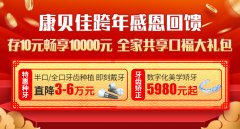 新年到,口福到 康贝佳,送礼来 【南京康贝佳口腔医院,开年即献首重豪礼】 预存金千倍膨胀,存 10 元畅享 10000 元口福大礼包。 礼包内容: 1、 2000元 EMS种植牙维护一次(每人限用一张)……【详细】
